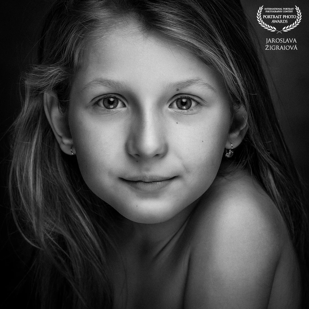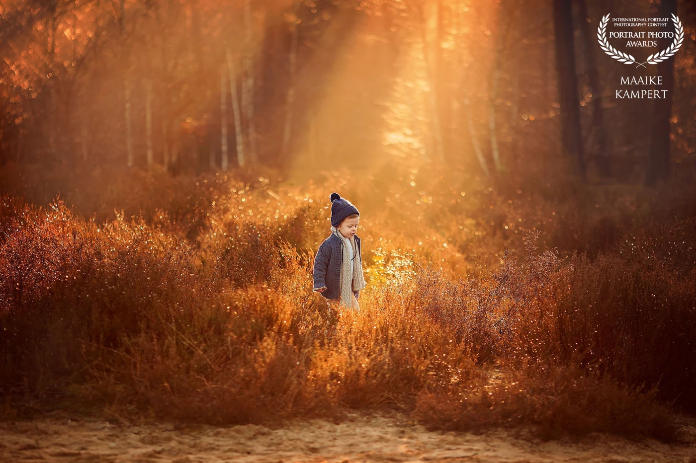 A portrait of an boy, standing before the camera for the very first time, captured in the light of the old masters.