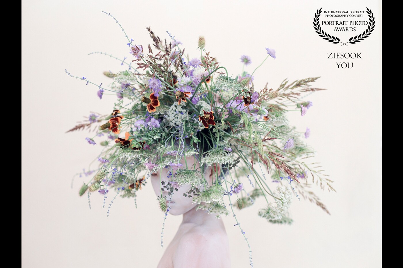 Ziesook’s art form always involves communication with the subject. She strives to have her work project the individual’s personality. Ziesook’s goal is to create an intimate visual that incorporates multiple layers of meaning. By experimenting with various media and combining fresh flowers and dry flowers, Ziesook creates an image with characteristics that lie somewhere between photography and painting.