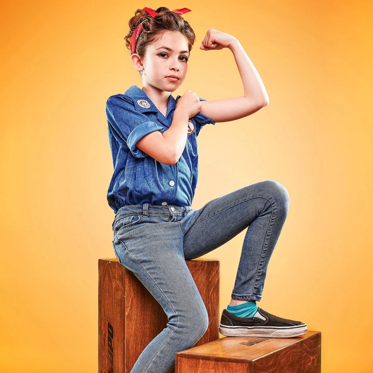 74th CollectionThis is the beautiful Bella posing in a Rosie The Riveter costume in my studio on a yellow savage seamless backdrop. This is a 3 light setup two ad200s on either side in strip boxes for rim light and an ad600 in a 70β umbrella centered and slight overhead as a key light. Shot with a Nikon Z6