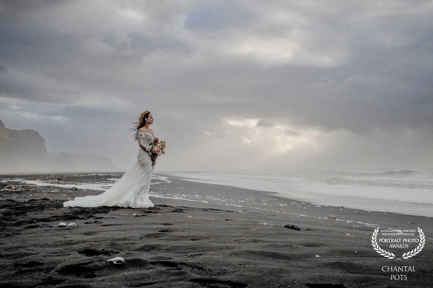 115th CollectionOn Iceland’s iconic black-sand shore, she stands quietly against the storm — a lone figure wrapped in ocean mist and raw emotion. A moment where the wild North meets timeless elegance.