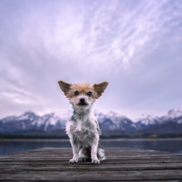 Small but mighty - Rosé, the small Yorkshire Terrier, proudly poses in front of giant mountains.
