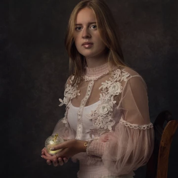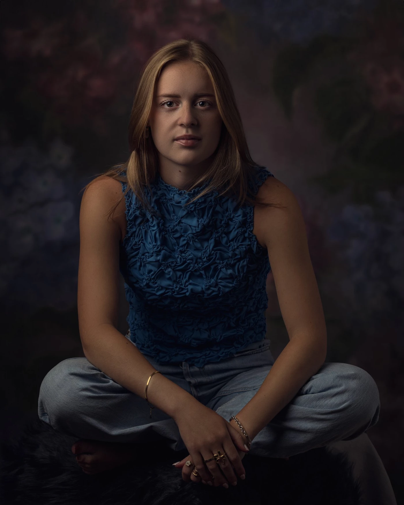 During the shoot with her brother Siem, Sofie also had a few solo moments in front of the camera. She chose a beautiful dress from my collection to create a portrait in the style of the old masters. Timeless and full of grace.