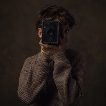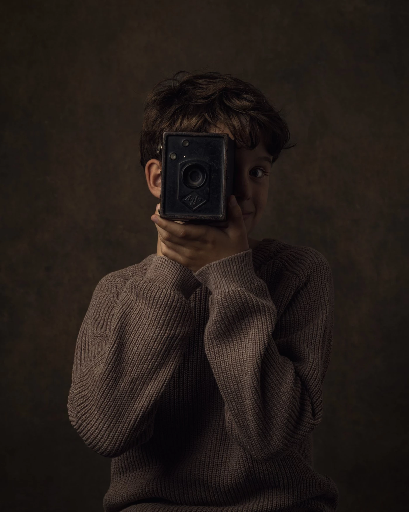 A portrait of an boy, standing before the camera for the very first time, captured in the light of the old masters.