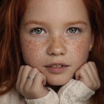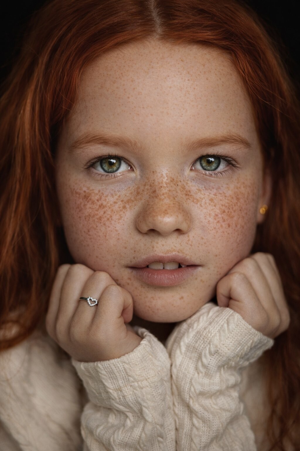 I moved in close to remove any distance. No space to hide, but also no need to. Every detail stays the freckles, the texture, the slight tension in her expression.