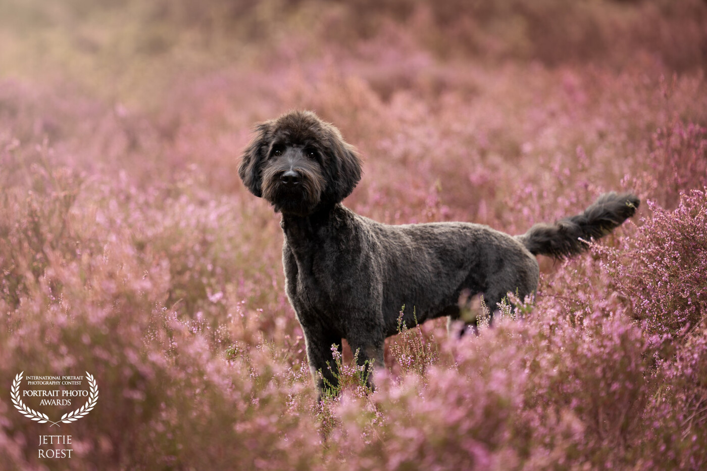 116th Collection5,5 months old labradoodle James in the blooming heather.