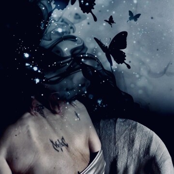 "ash," I call it: not "smoking girl" or "cigarette" or "profile of a woman" or anything of that sort that - perhaps - flickers and flutters through one's mind upon viewing (I suppose mine as well...).