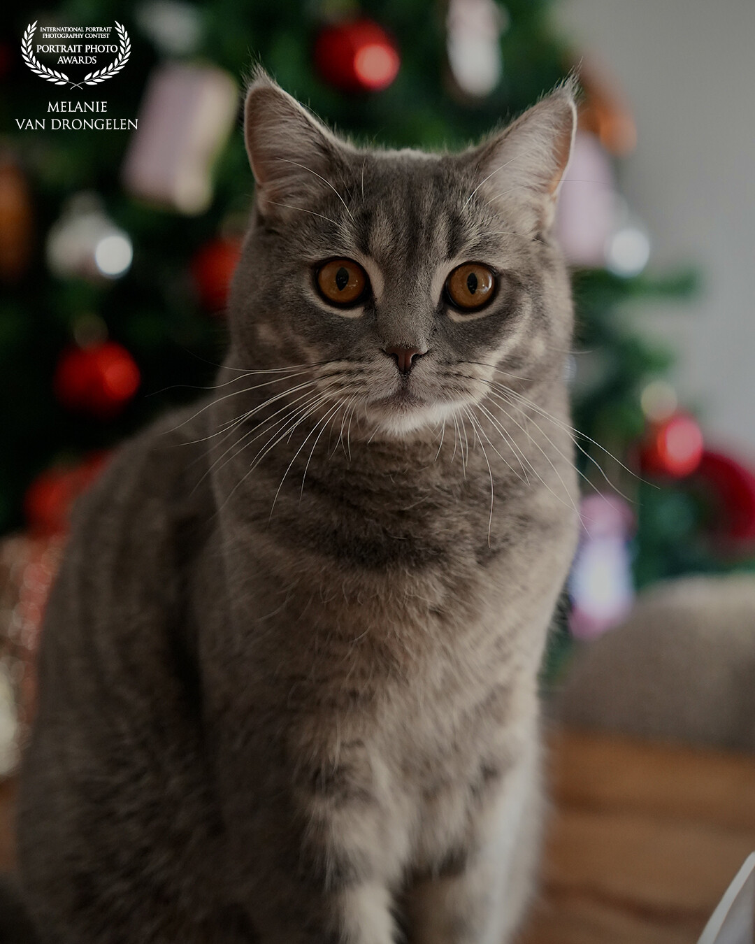 Mylo, een prachtige Britse korthaar kitten met een zachte grijs gestreepte vacht, zit trots en kalm op zijn krabpaal. Zijn grote, nieuwsgierige ogen kijken recht in de camera, alsof hij je gedachten probeert te lezen. De lichtval geeft de scène een dromerige sfeer. Het lijkt even alsof de tijd stilstaat. Zijn pluizige vacht vangt het zachte licht perfect, waardoor hij bijna koninklijk oogt. Een moment van rust, schoonheid en stille aandacht gevangen in één blik.