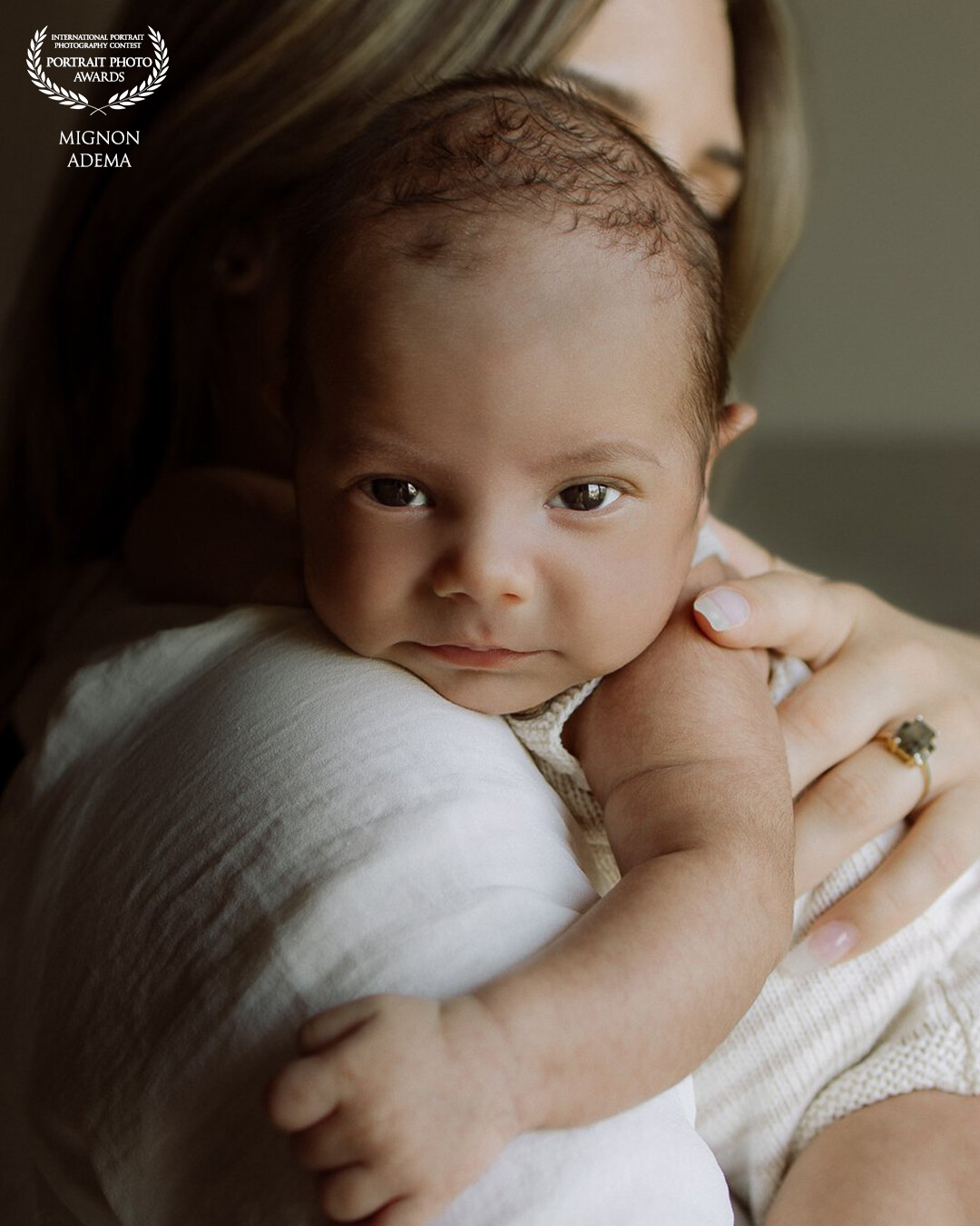There’s something so powerful in the calm of this moment. A baby resting gently on their mother’s shoulder, eyes full of curiosity, skin still soft and new. The warmth of touch, the silent bond. This image captures the quiet magic of early motherhood.