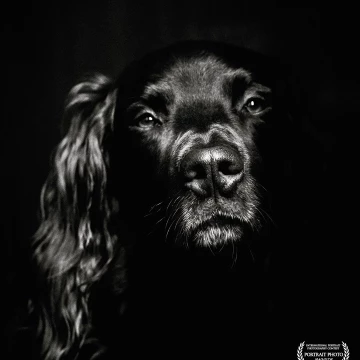 A captivating black-and-white fine art portrait that reveals both strength and sensitivity. The low-key lighting sculpts the dog’s features with dramatic contrast, highlighting the lustrous texture of the coat and the quiet intensity of the gaze. This timeless image balances elegance with raw character, inviting the viewer to connect with the soul behind the eyes.