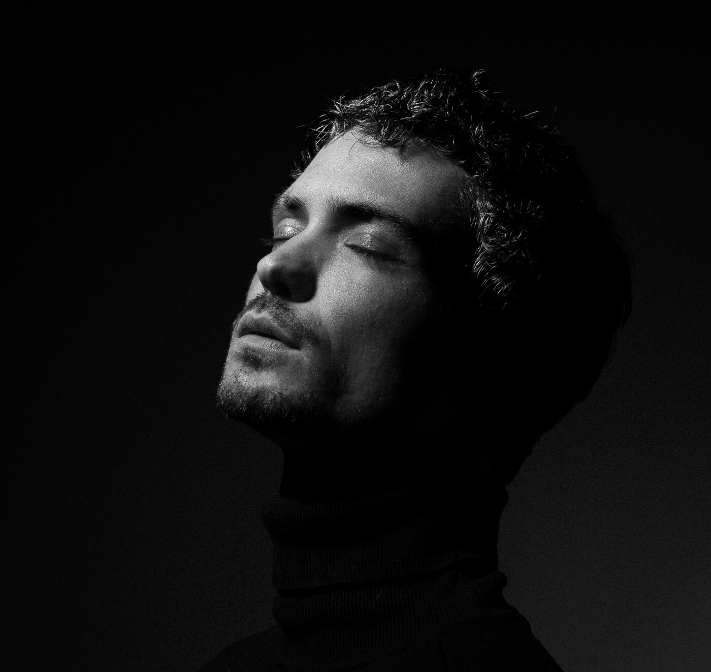 A study in solitude and surrender. With his eyes closed, the subject turns inward, illuminated just enough to hint at the contours of vulnerability and strength. This image is about the spaces we hold inside ourselves—where light and shadow are no longer opposites, but partners in presence.