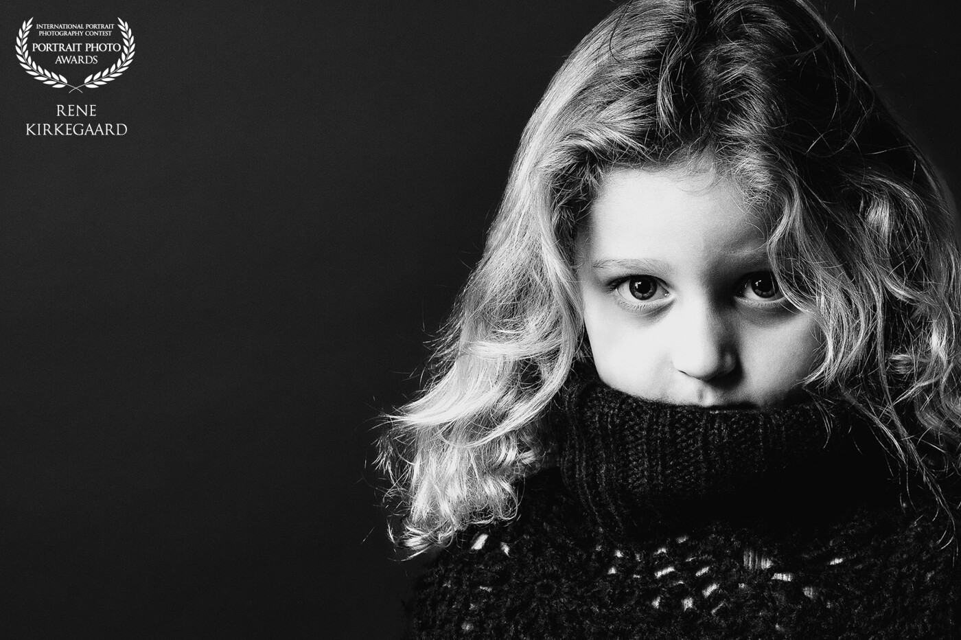 This portrait captures a beautiful girl with her chin tucked into her sweater, offering a strong and captivating gaze. Her subtle posture and intense eyes made for a compelling image.