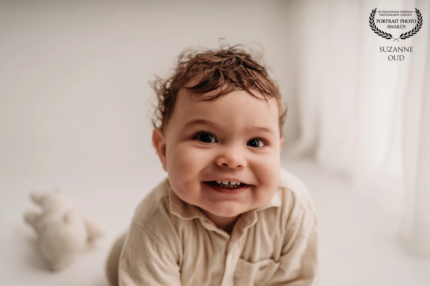 Vrolijke Elvio! - Studio portret tijdens een cake smash fotoshoot