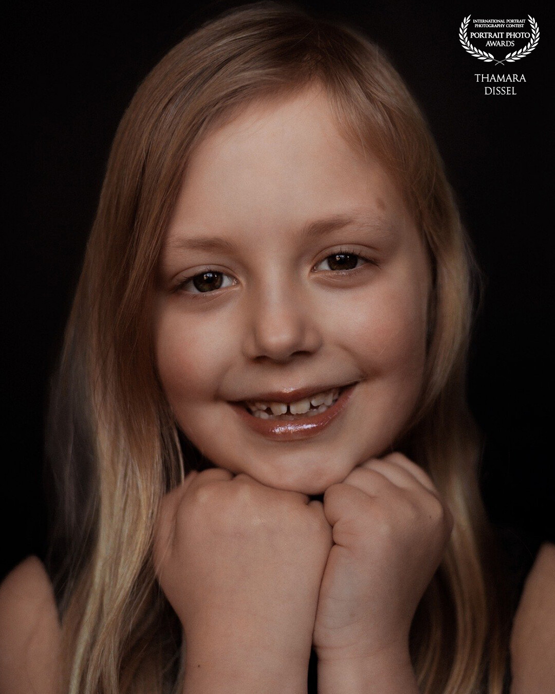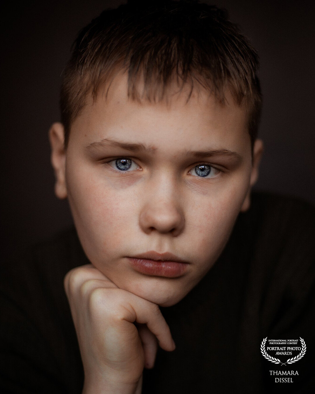107th CollectionThis sweet cute little boy came with his nieces for a beautiful portrait photo. He is great on camera with his beautiful blonde hair and blue eyes. A deserved winner.