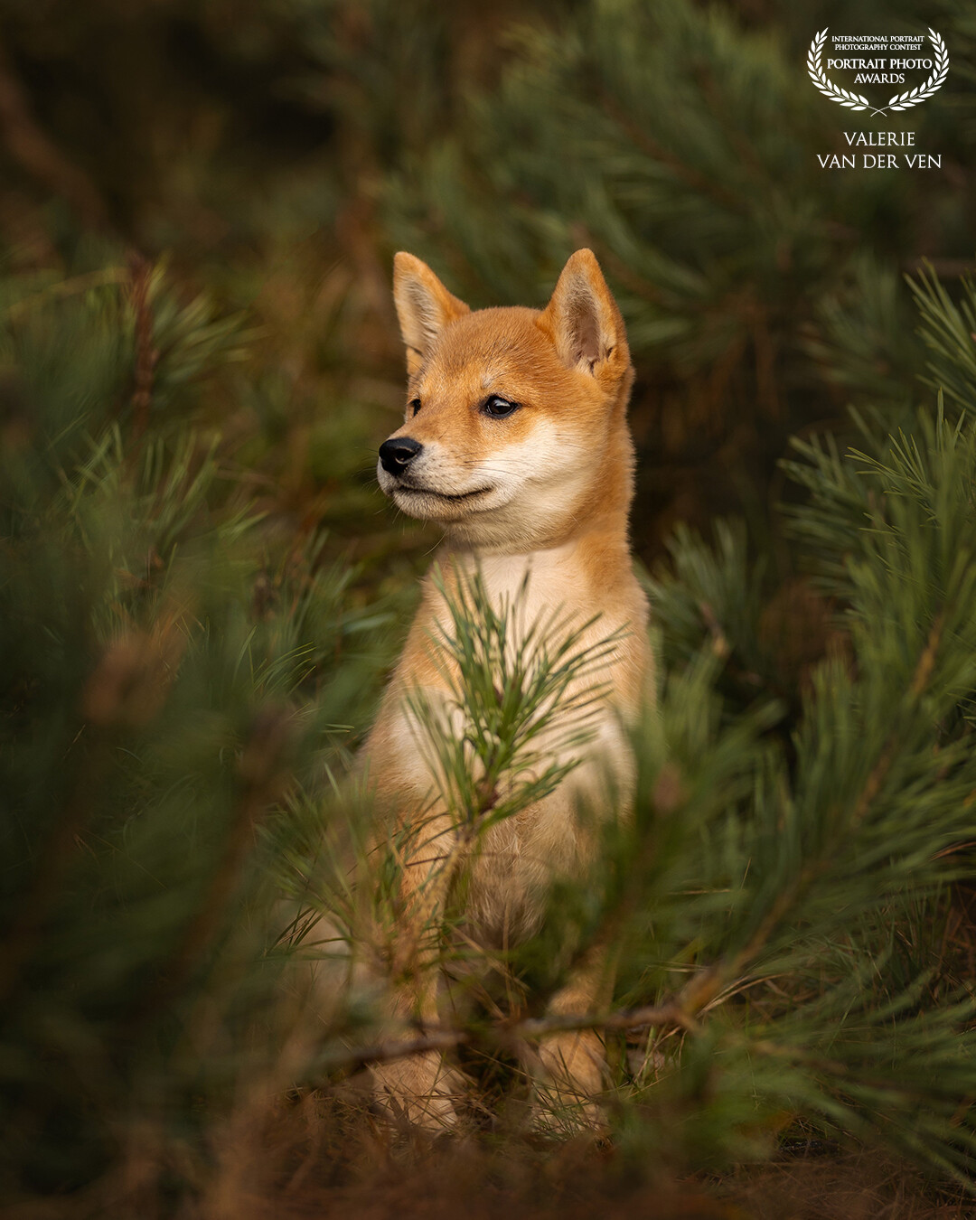 Cute puppy Suki 13 weeks young. Looks like she discovered the forest, but it was just one big tree and she fitted inbetween.